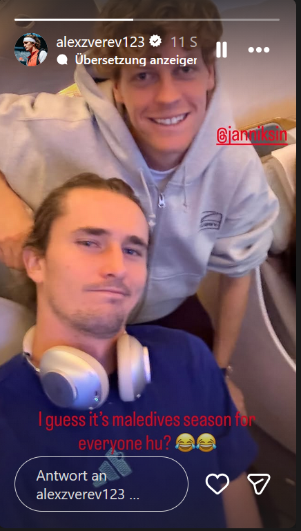 Die Malediven sind ja das grundlegende Ziel aller Tennisprofis, so scheint es. Wenn man sich schon nicht mal außerhalb der Tour aus dem Weg gehen will. Und so verwundert es fast nicht, dass auch Jannik Sinner und Alexander Zverev im gemeinsamen Flieger in Richtung Urlaubsparadies saßen.