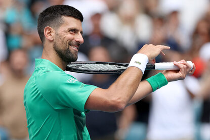 Novak Djokovic steht beim ATP-Masters-1000-Turnier in Miami im Finale. Auch dank der Hilfe übergroßer Spezial-Handschuhe.