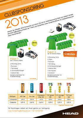 Hier eine Übersicht über die HEAD-Sponsoring-Pakete und die Ball-Preise.