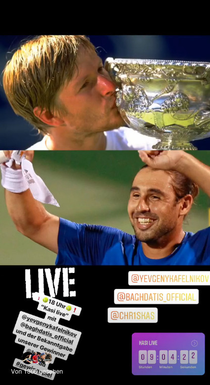 Baghdatis und Kafelnikov - ab 18 Uhr bei Kasi live Nr. 15 auf Instagram unter tennisnetnews!